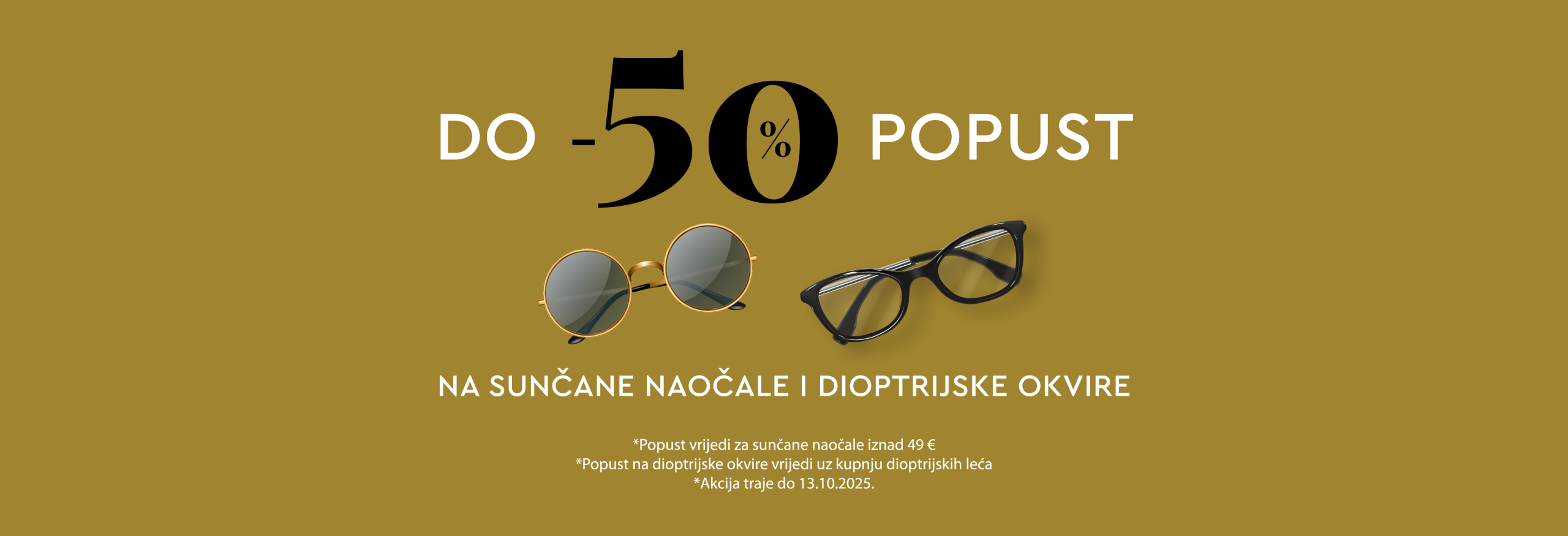 - na sunčane naočale – popust se odnosi na sve modele s redovnom cijenom iznad 49 €